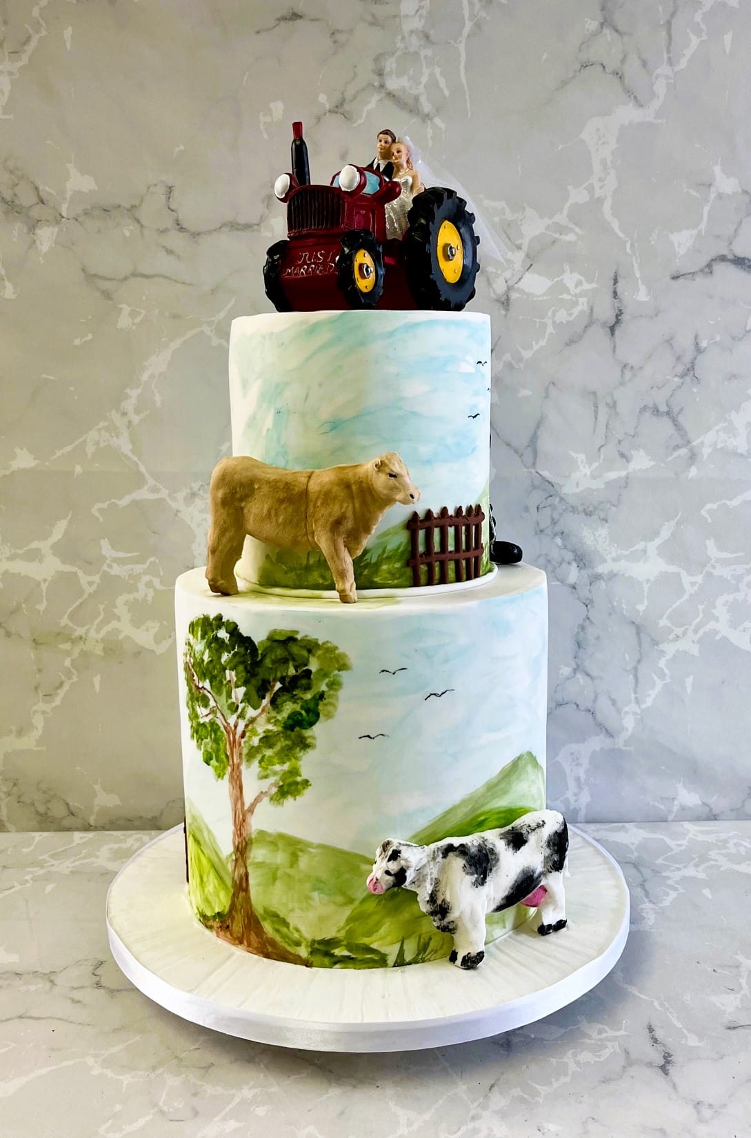 hand painted Farming wedding cake 6-9-9' cakes €850 cake topper not included