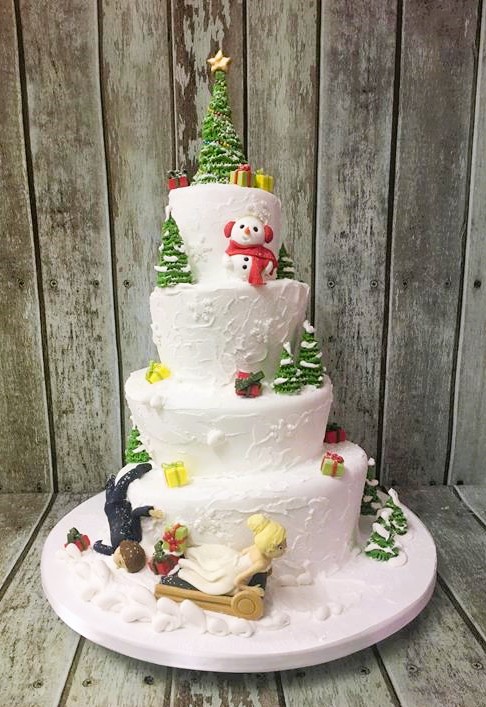 Topsy Turvy winter sleigh wedding cake 4-6-8-10'' cakes €850
