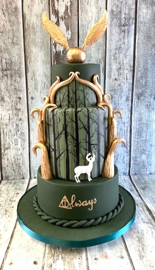 Harry Potter green forest hand painted design wedding cake 5-7-7-9'' cakes €860
