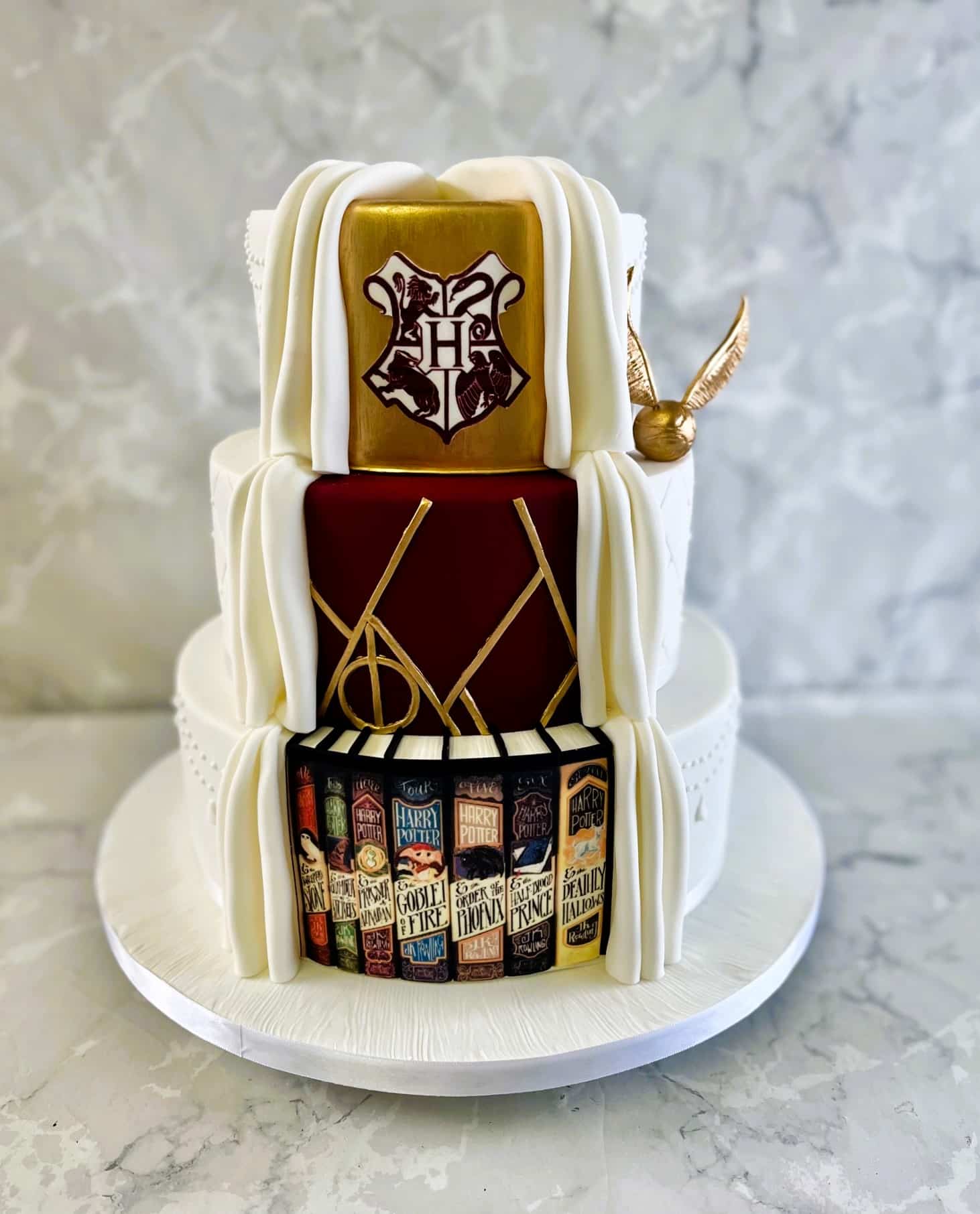 Harry Potter split wedding cake with books and hand painting 6-8-10'' starts at €750